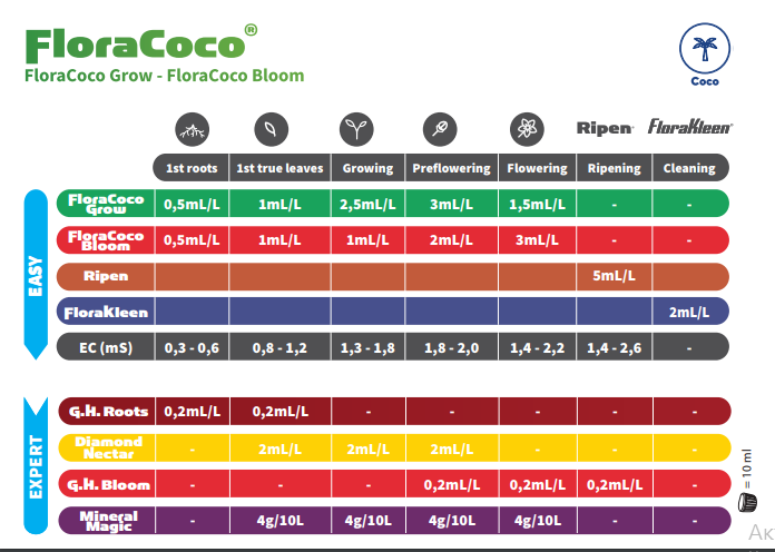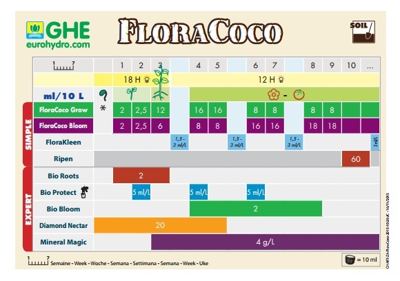 Это двухкомпонентное удобрение, состоящее из Flora Coco Grow и Flora Coco Bloom, создано специально для того, чтобы вы могли получить максимальные результаты, выращивая на кокосовом грунте. Flora Coco имеет мощную уникальную формулу, основанную на тридцатилетнем опыте компании. Данная формула включает в себя такое количество кальция, магния и фосфора, чтобы полностью обеспечить растение этими элементами для получения отличных результатов.