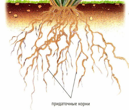 2. Придаточные корни — корни, развивающиеся от стеблей, листьев, старых корней. Появляются за счет деятельности вторичных меристем.